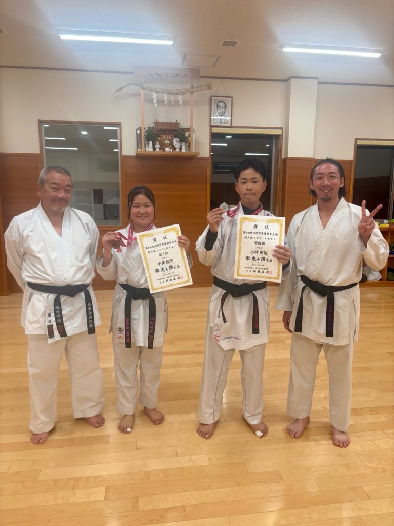 第41回 空手道交流大会(9/7) 形の部 男子 3年浦中 亮佑 第3位4年新田 歩叶準優勝5年岩城 柊叶第3位5年浦中 祐典優秀賞 女子 4年大澤 麗 準優勝 組手の部 男子 4年新田 歩叶優勝5年岩城 柊叶優秀賞5年浦中 祐典優秀賞 女子 2年岩城 柚叶優勝5年新井...